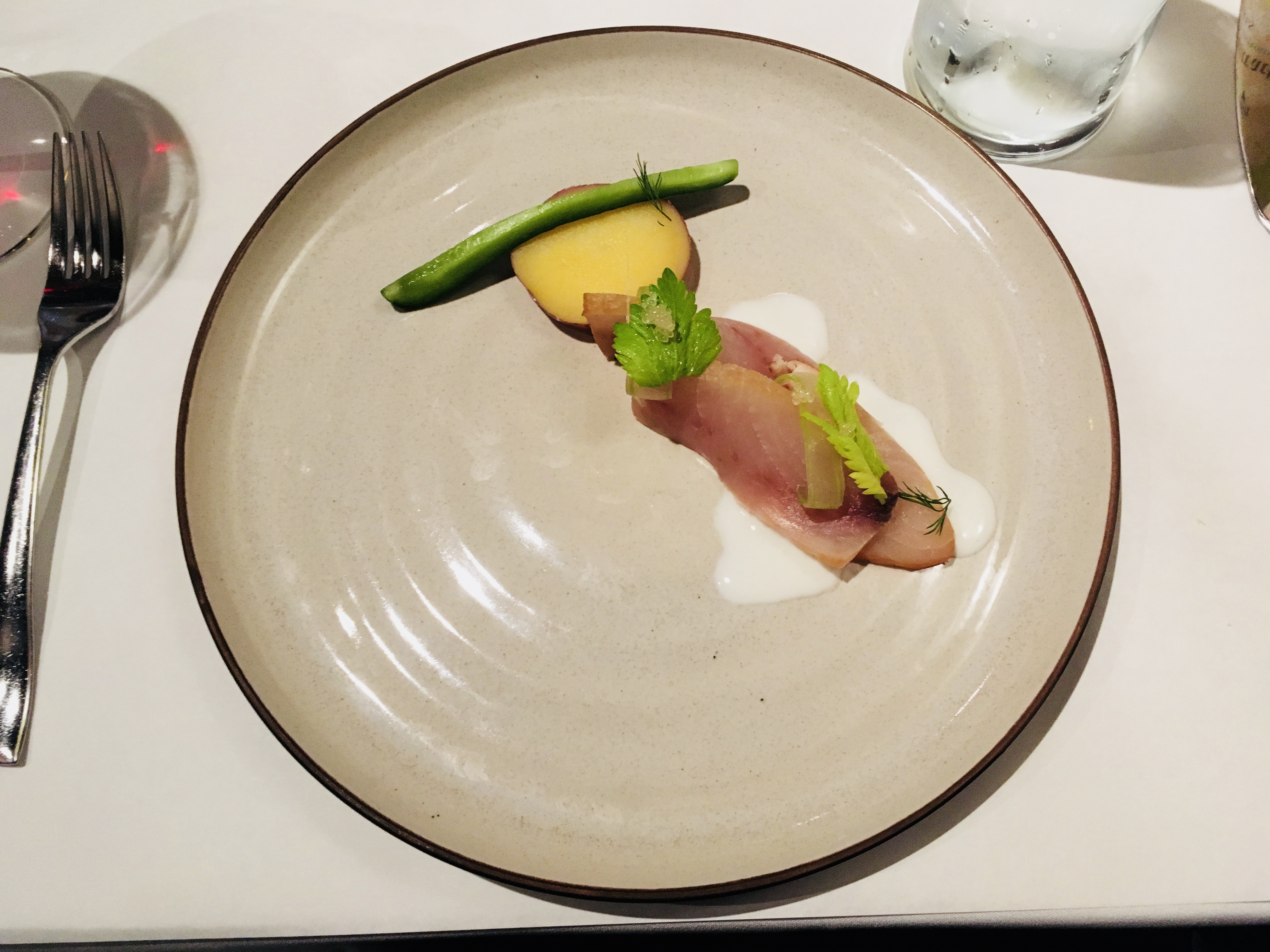 Smoked Chula Swordfish, Pickled Huckleberry Gold Potato (maybe the best potato I ever tasted), Cucumber, Finger Lime (Fruit caviar), Dill, Celery Leaf and Buttermilk Dressing. Really Great! A careful gentle smoke on the fish the way I like. Never tasted swordfish like this before. They used the most special tasting potato. Celery leaf added a great flavor. Just wished they went a little heavier with the finger lime. Didn’t get enough to taste or feel the popping.