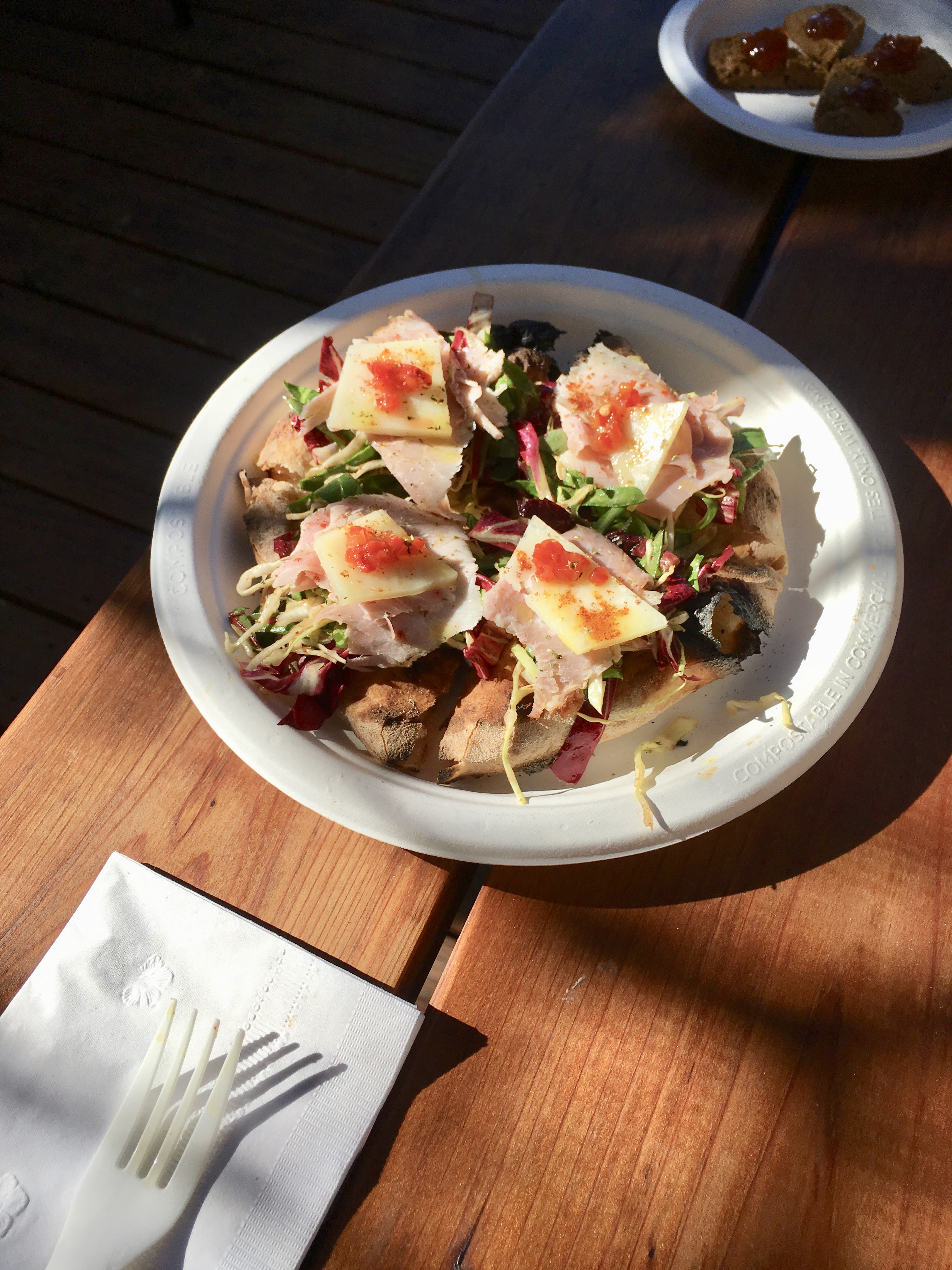Oh and my husband doesn’t usually even like fish and he even thinks it’s amazing. The fish torta is crispy mild perfectly prepared mild tasting white fish that is really great. But it is the embellishments of turmeric sweet onion jam, FRESH DILL, and this really good spicy mayo….a little cilantro, and this delicious toasted bun that taste FORKING INCREDIBLE together. The sandwich come with hay fries. The spicy mayo reminds me of espelette pepper but I don’t think they’d use that kind because that pepper is expensive …whatever it is it is really delicious.