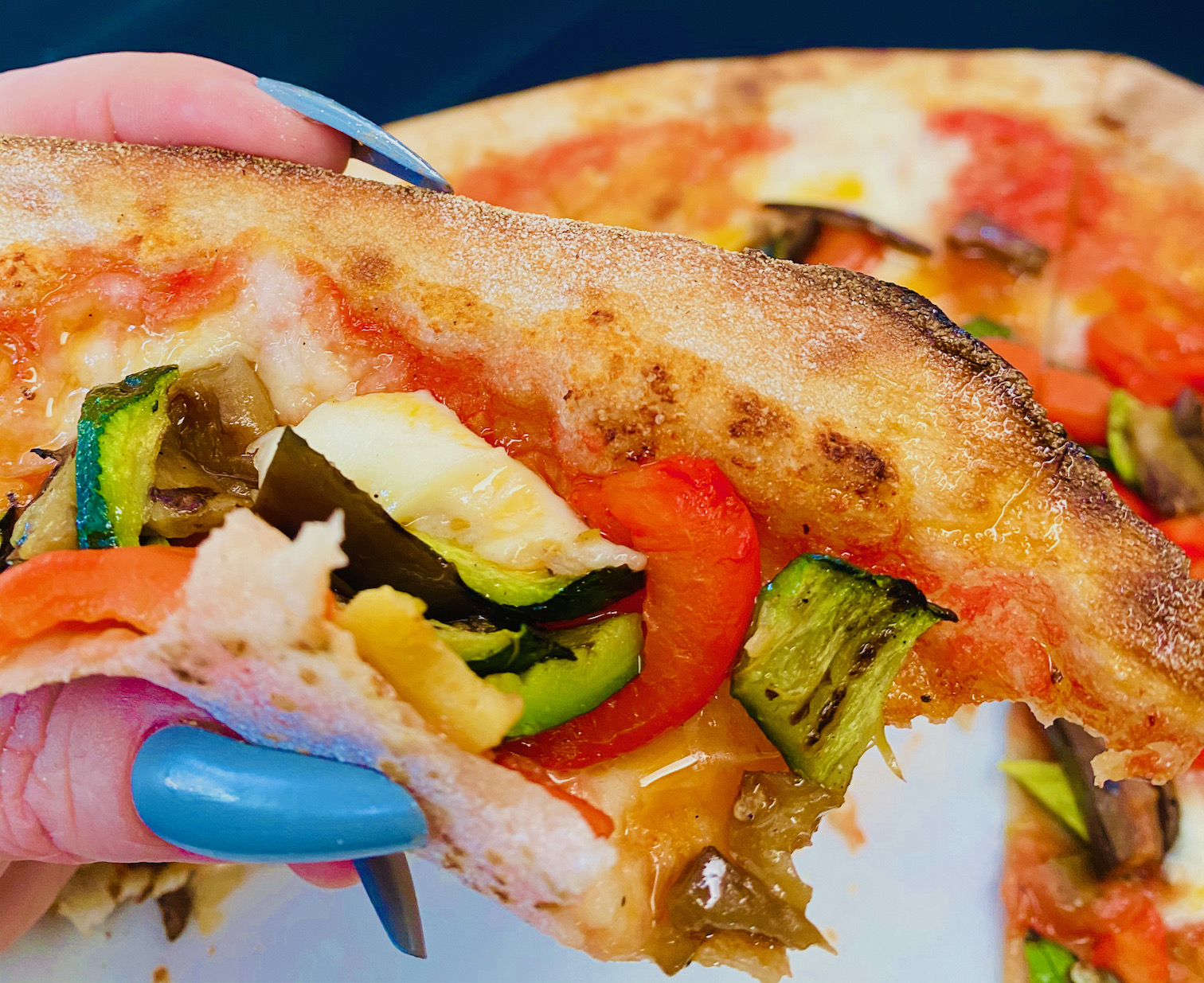 Bottega Pizzeria Ristorante in north Glendale offers all of their pizzas (around 16 varieties Milano Style……….. that means EXTRA thin…much thinner than their normal thin Neapolitan pizzas. Thin pizzas never weigh you down. You can enjoy more pizza when you go for the extra thin. Up above is the vegetariana pizza made of D.O.P. tomato sauce, flor di latte, red bell pepper, zucchini, eggplant, basil, and extra virgin olive oil.
