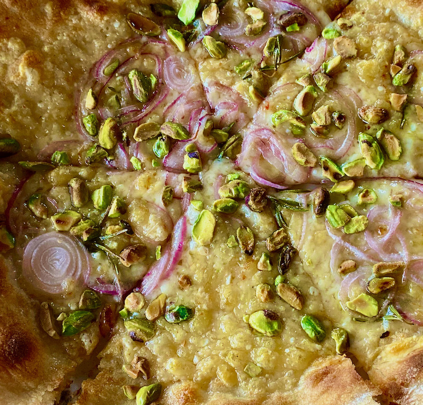 It gets baked for a very short time at around 900 degrees in a certified Italian wood oven.
